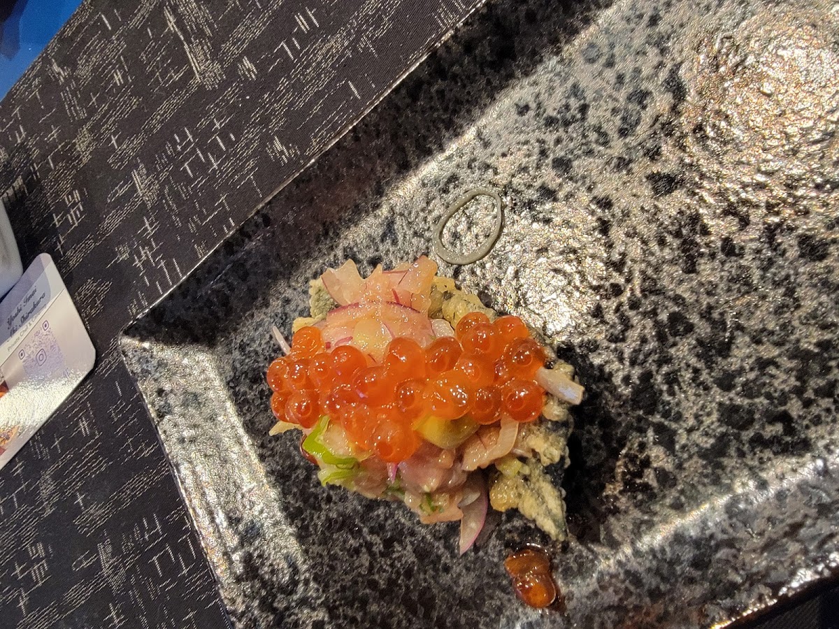 The restaurant's menu features a diverse selection of dishes, including their signature Miso Soup, which is the perfect starter to warm you up for the meal ahead. For those who love fresh, top-quality seafood, the Custom Tuna Toro on Tempura Seaweed Chip topped with sake-aged salmon eggs that are smoked is an absolute standout. It's a dish that blends creativity and tradition, with every bite delivering a burst of flavor.
