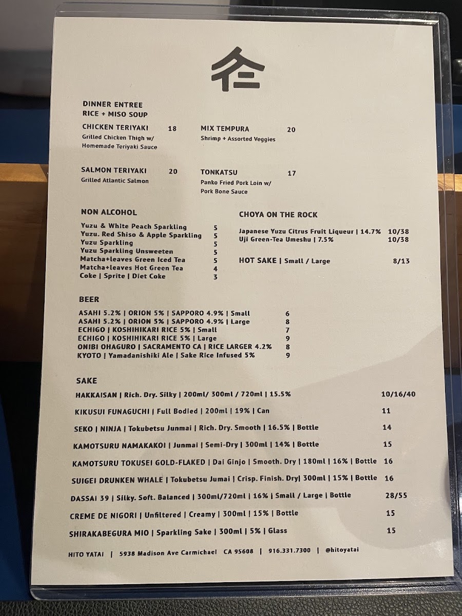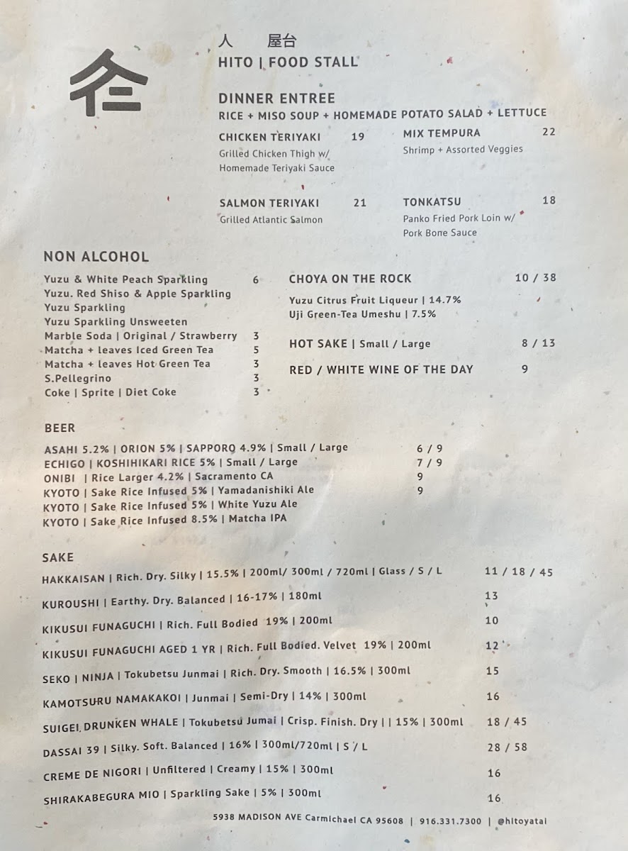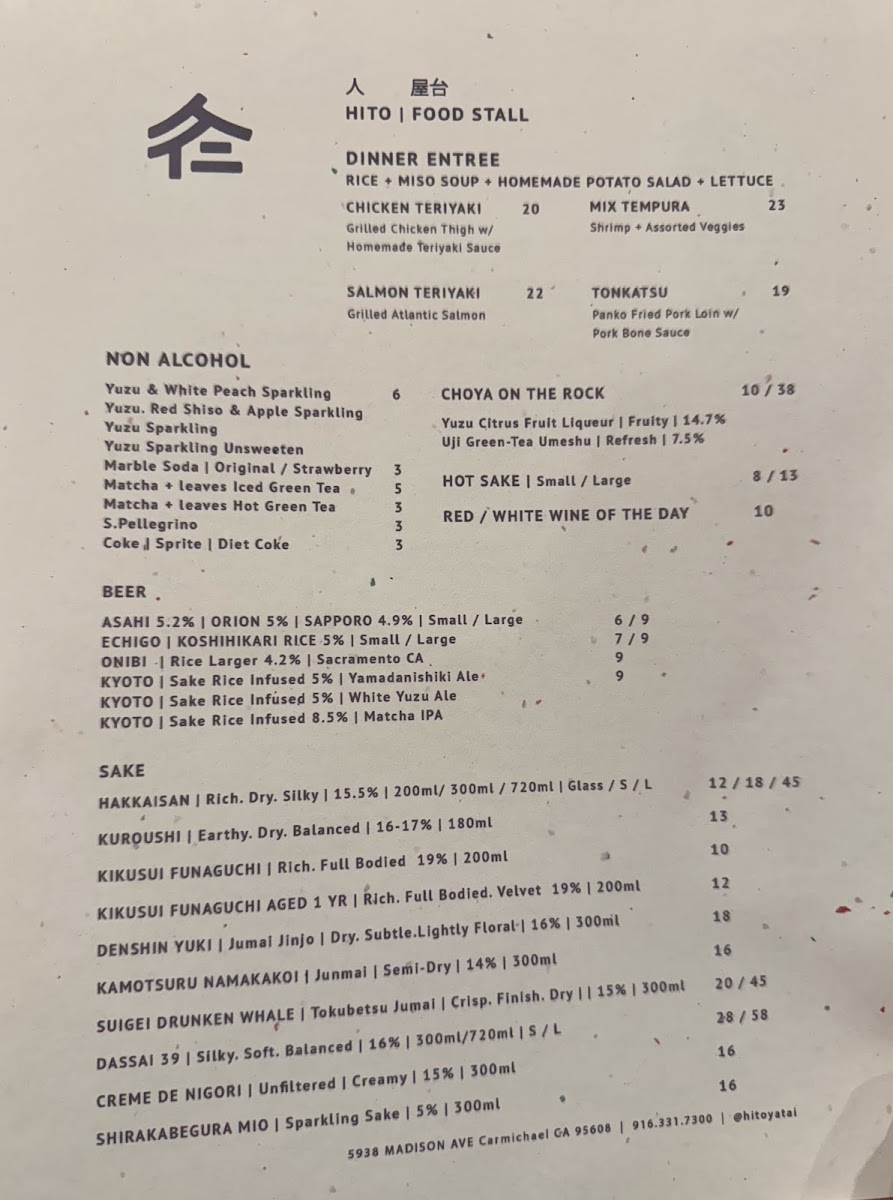 In conclusion, the menu at Hito Yatai is a perfect blend of traditional and creative Japanese dishes, catering to a wide range of tastes and preferences. Whether you’re here for a quick snack, a hearty entrée, or a refreshing drink, you’ll find plenty of delicious options to enjoy.