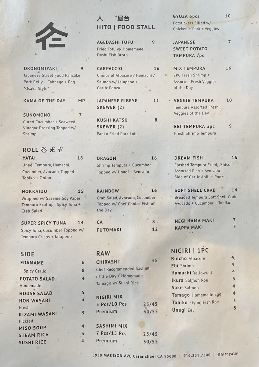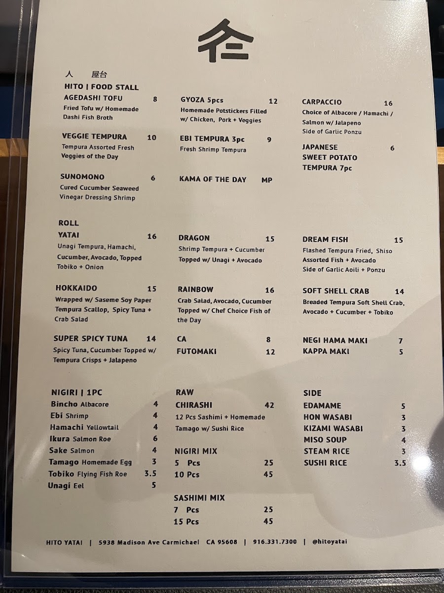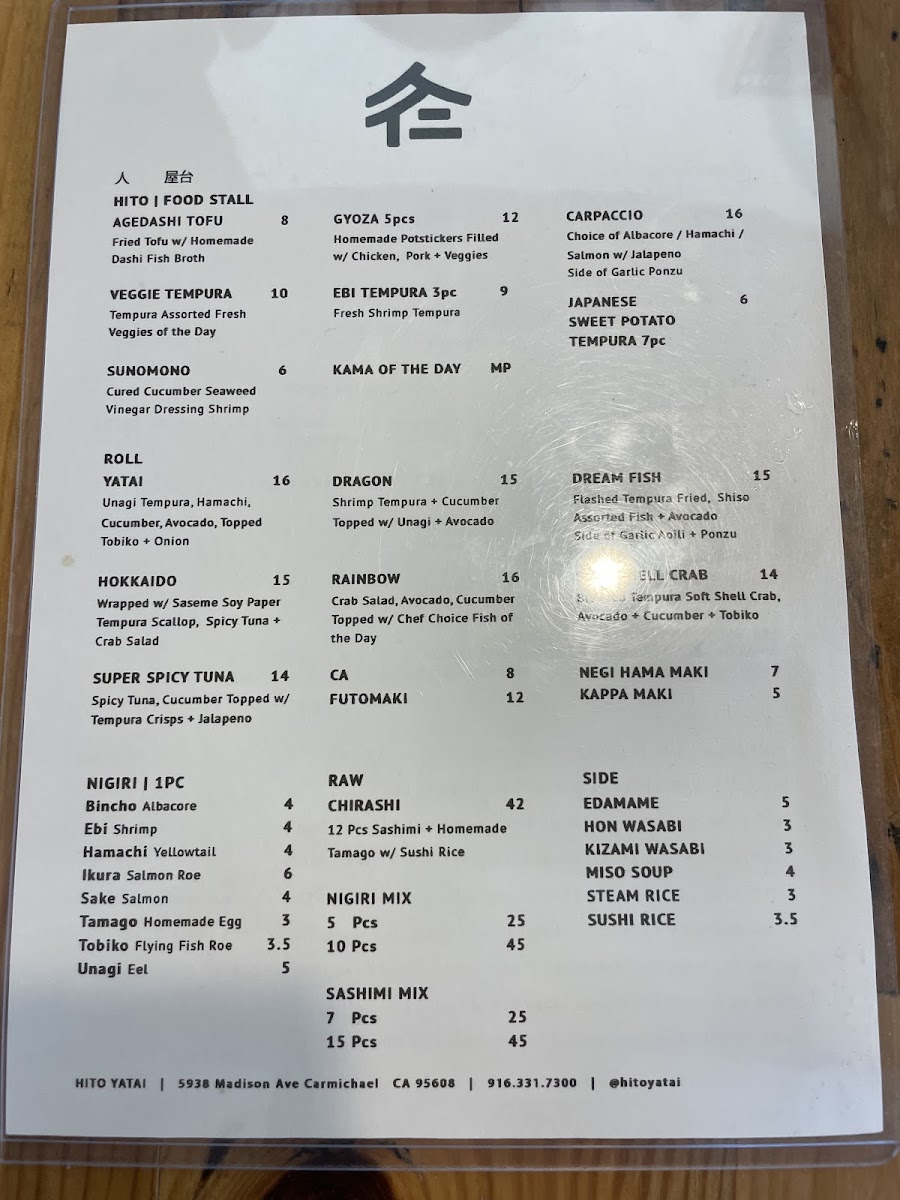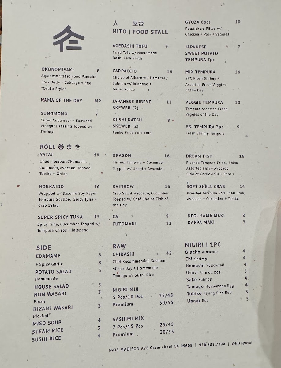 In conclusion, the menu at Hito Yatai is a perfect blend of traditional and creative Japanese dishes, catering to a wide range of tastes and preferences. Whether you’re here for a quick snack, a hearty entrée, or a refreshing drink, you’ll find plenty of delicious options to enjoy.